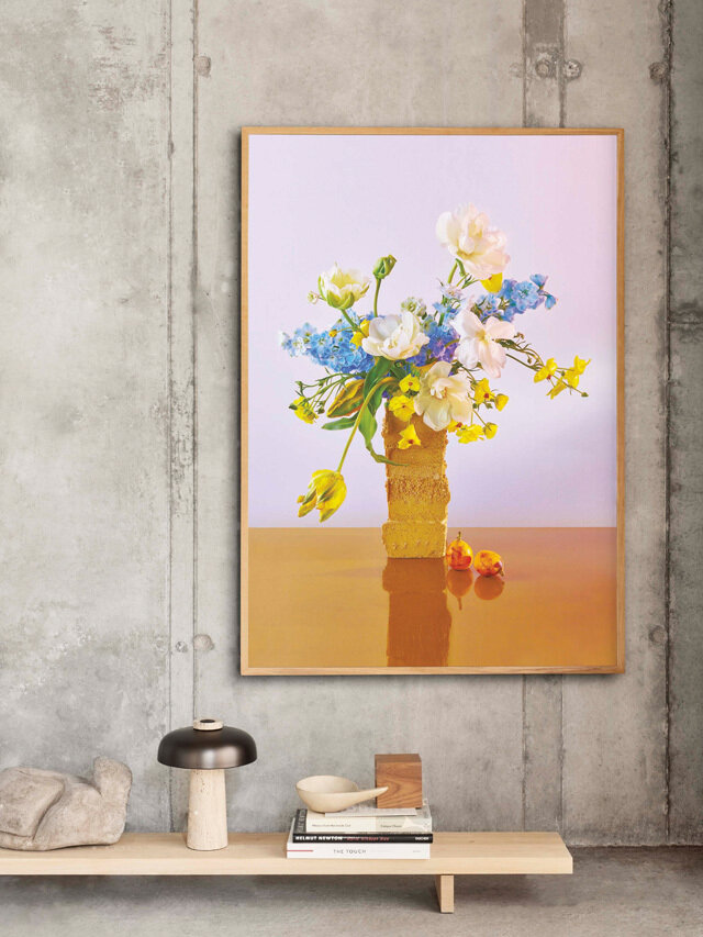 一番下に飾られたのは【Flor Azul】。温かみのある黄色と鮮やかなインディゴブルーの一輪の花描かれた、大胆且つシンプルな1枚。まさに、お部屋に花を添えてくれるアートポスターです。(^^*)