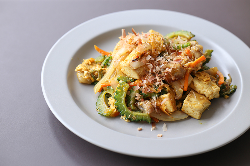 というわけで、こちらが今回のまかないの全貌です。「THE 夏の食卓」といった、彩りも香りも豊かなランチです!カレーのスパイス香るゴーヤチャンプルーはレシピを公開しているので、ぜひチェックしてみてくださいね。