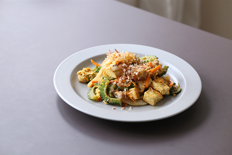 そのほかカットした具材も投入し、もうここまでくれば今日のまかないのメインがなんなのか、皆さんもお分かりですよね?そう、「ゴーヤチャンプルー」でございます。