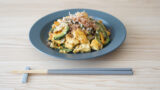 完成した一皿がこちら。最後にひと掛けした鰹節がいい感じです。もう事務所中いい香りです。