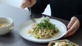 今回はHIBITO (ヒビト) 「SABI」シリーズのディナープレートに盛り付けました。アクセントの錆釉の縁取りが和食とも相性抜群です。