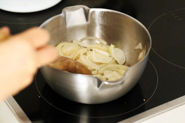 鍋にバターを熱し、玉葱を炒める。