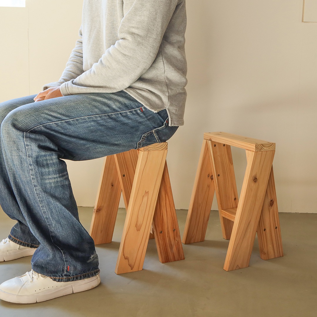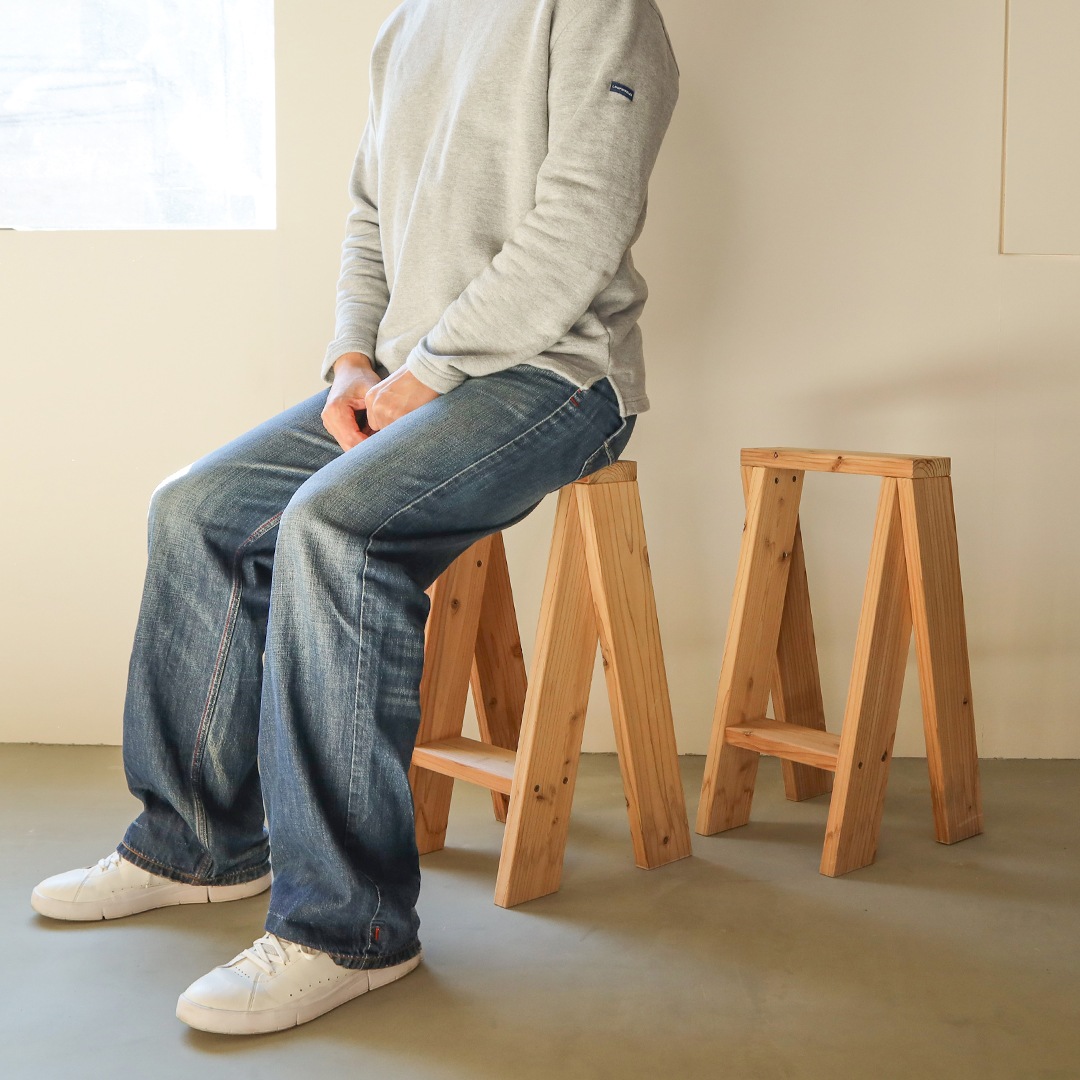 横から見た姿がアルファベットの「A」のような【AA STOOL】。サイズが3種類からお選びいただけます。
