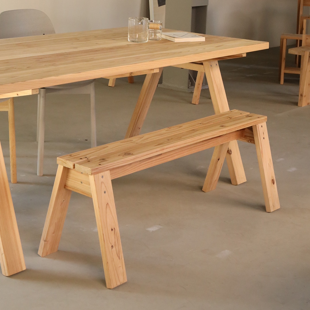 ダイニングテーブルに合わせる椅子は、ベンチも素敵ですよね。先ほどご紹介した KOBO TABLE と合わせて使うのもおすすめ。こちらも軽量なので、使わないときにはテーブルの下へしまえちゃうところも魅力です。