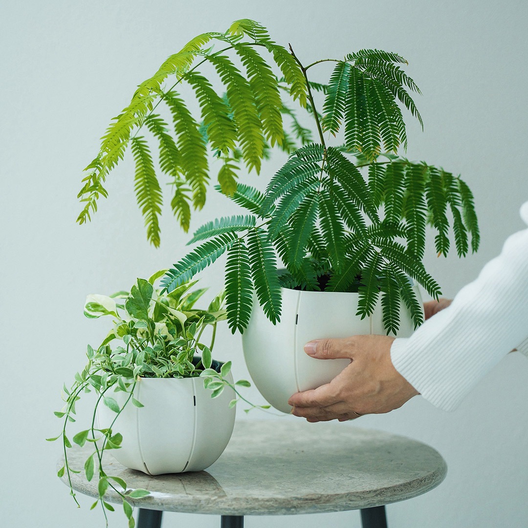 シンプルだけれどどこか奥行きのあるデザインは、植物を飾るだけで空間をやさしく仕立ててくれます。