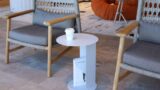 スチールを使用した、構造美が際立つサイドテーブル。