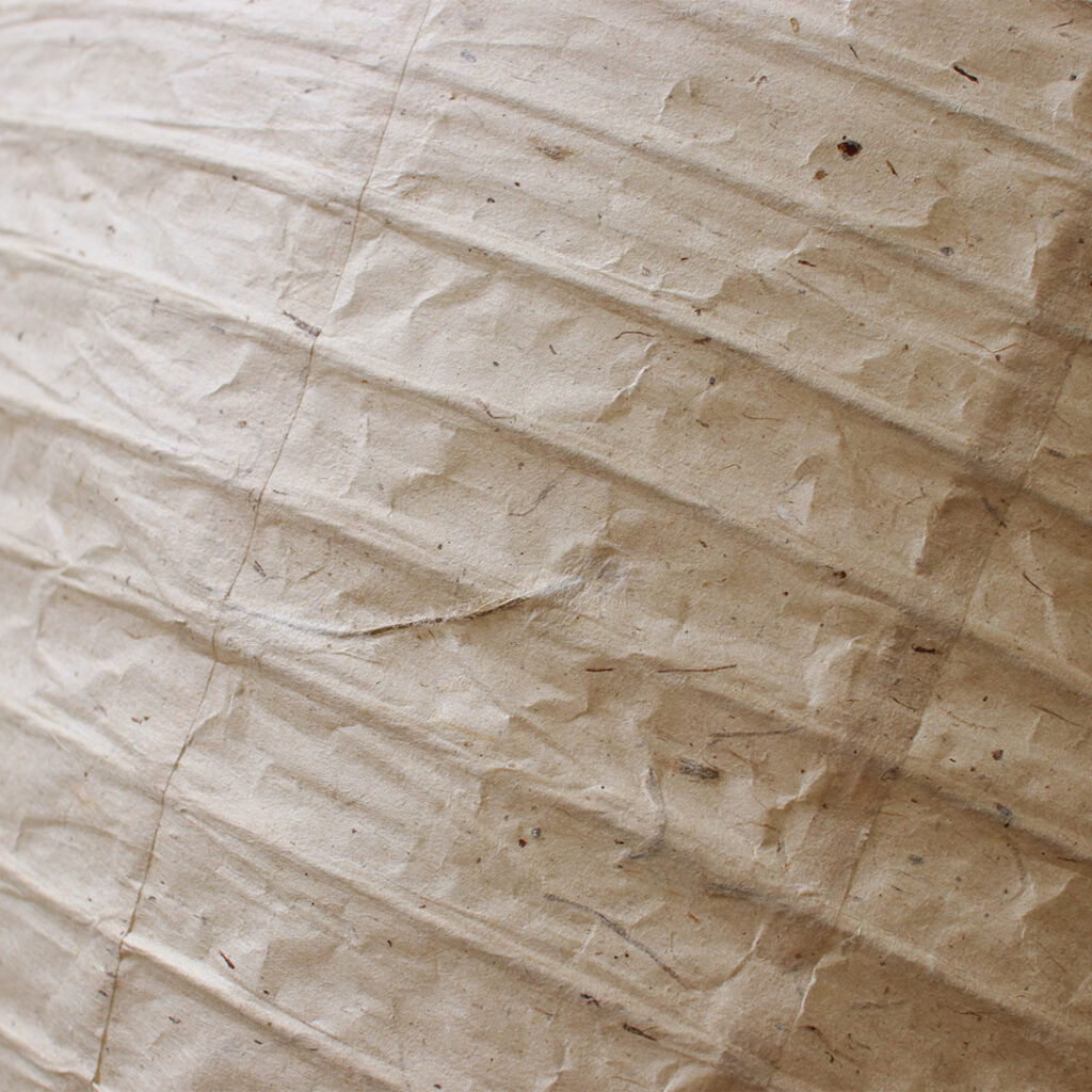 自然な風合いを生かしたペーパーシェードはまるで和紙のようで、どこか私たちにも馴染み深い温もりを感じるランプです。