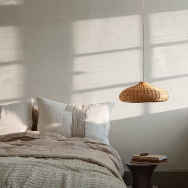 ・ラタンのシェード … 編み込みからこぼれる光と影が幻想的で、自然素材ならではのリラックス感。