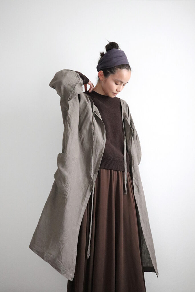 それに写真からも伝わってくる通り、つくりがゆったりとしているので、寒い日に厚手のニットを着ていても大丈夫。腕も上げやすく作業がはかどります。