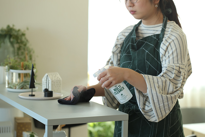 余計な成分を省き、水と石鹸成分、植物由来の界面活性剤だけでできています。基本的にはマルチクリーナーとして家中のお掃除に使えますが、ガラス面などには向かないのでご注意を!