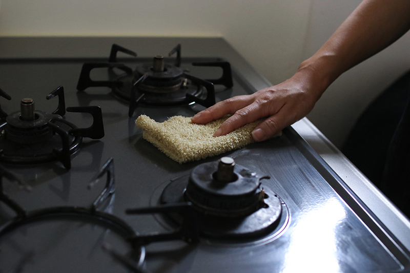 もともとは飲食業界に向けて開発された生地なので、キッチン周りの汚れには大活躍!冷蔵庫の中もこれでふくとピカピカになります。KOZでもファンの多い、隠れた名品なんですよ♪
