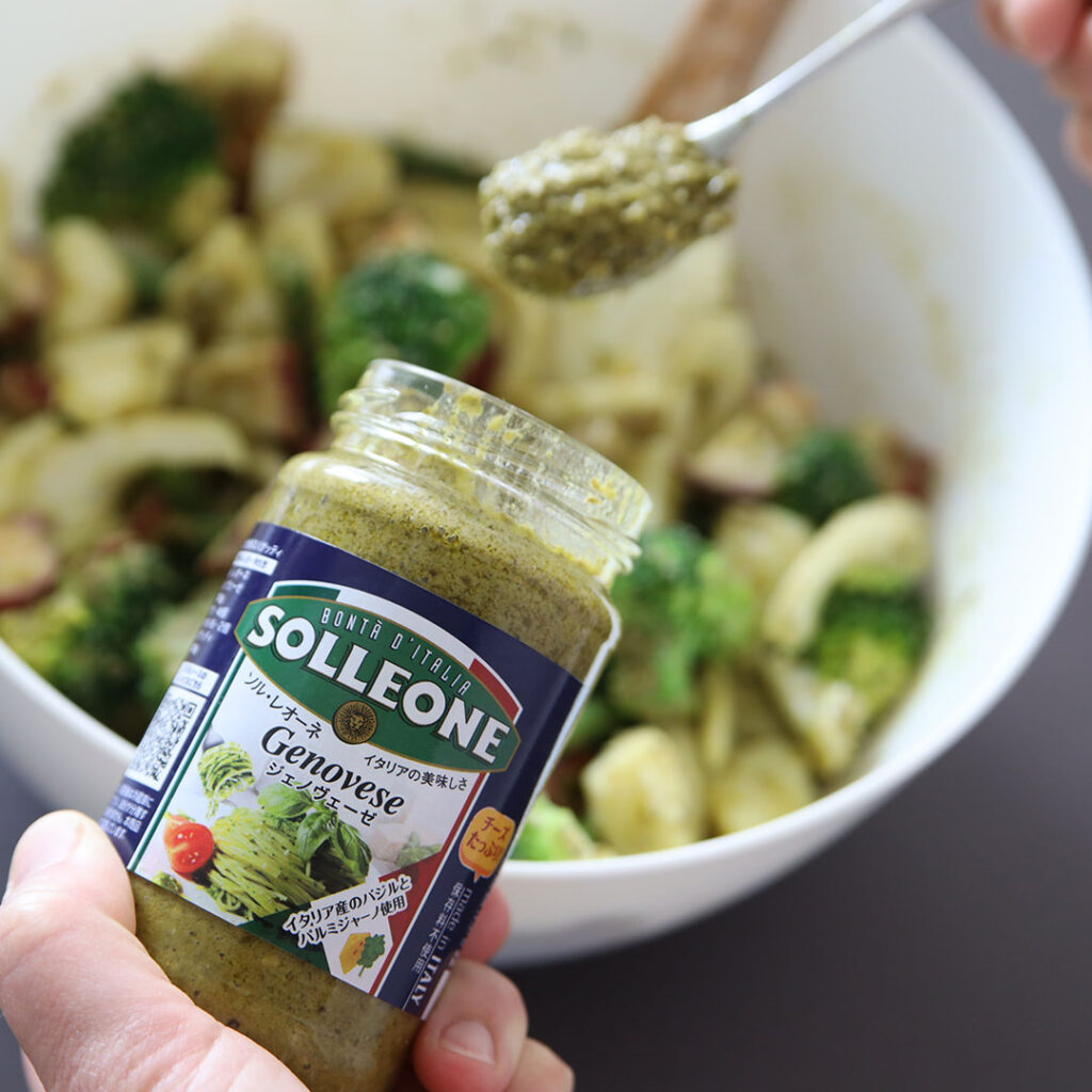 ジェノベーゼソースがあれば、パスタだけでなく、さまざまな料理に活用できるのでとても便利です。