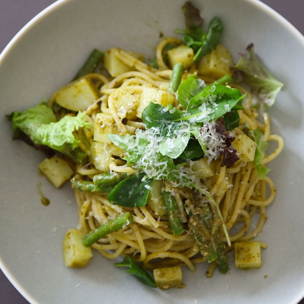 もちろん、ジェノベーゼソースといえばパスタが定番。茹でたパスタにソースを絡めるだけで、本格的なジェノベーゼパスタが完成します。