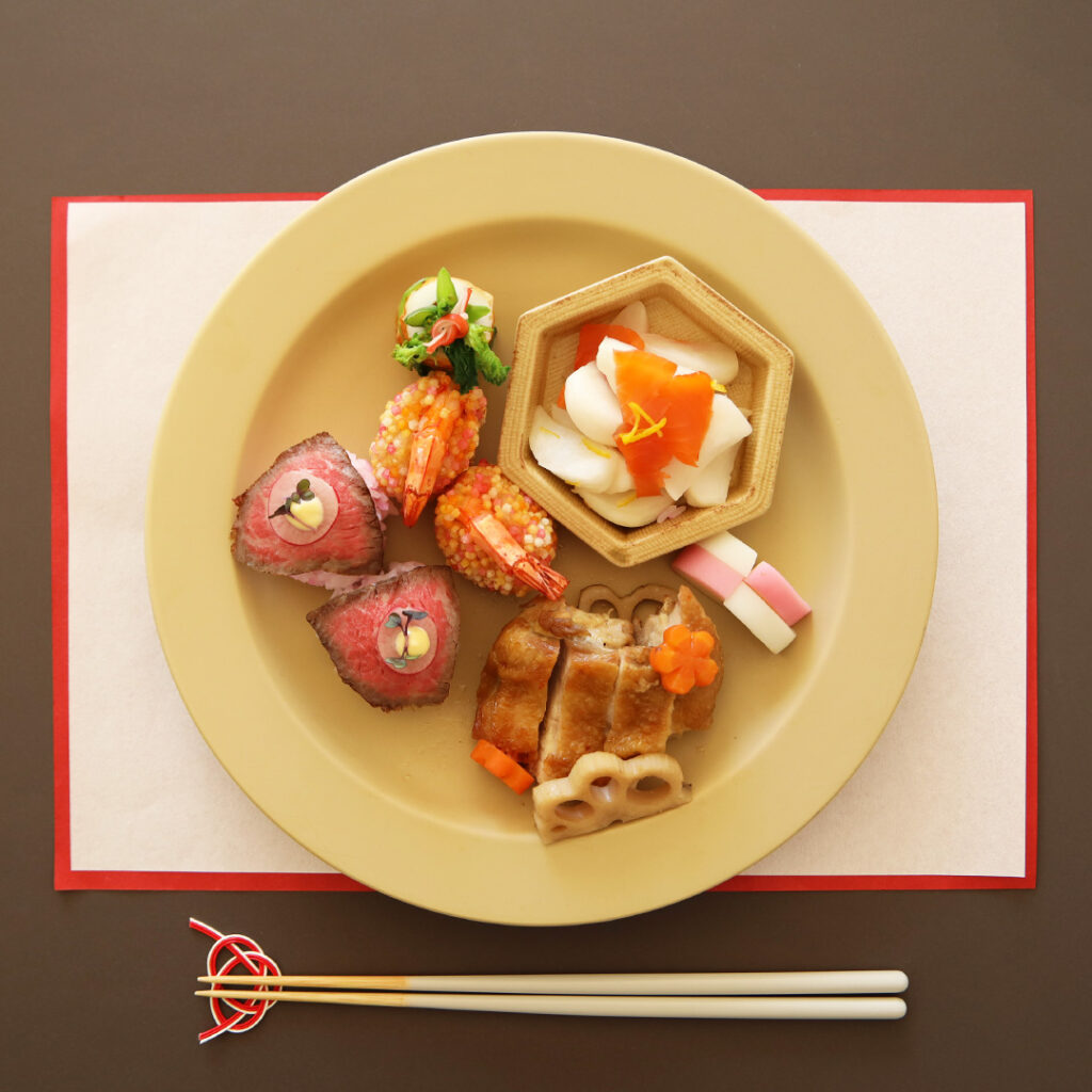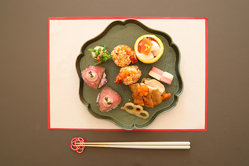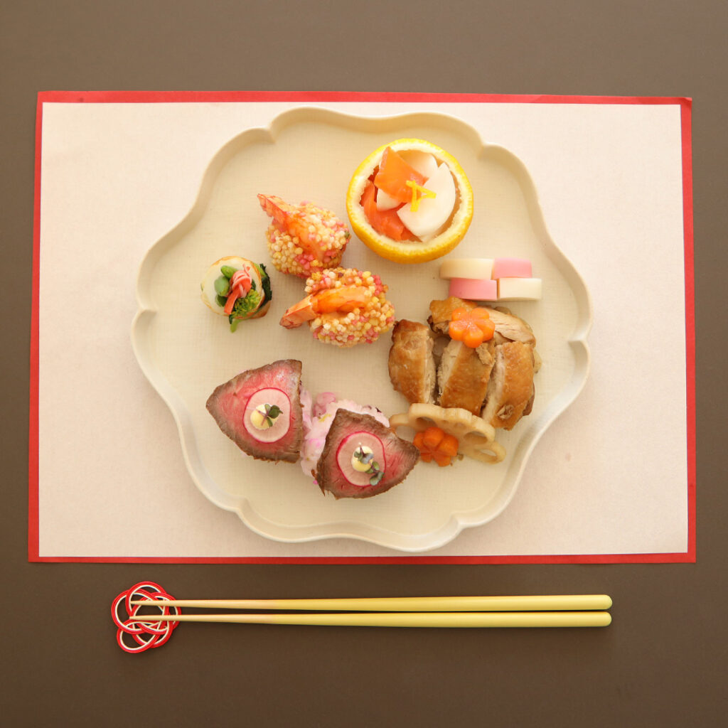 赤・白・金・緑など、お正月料理の色味を上品に引き立ててくれます。