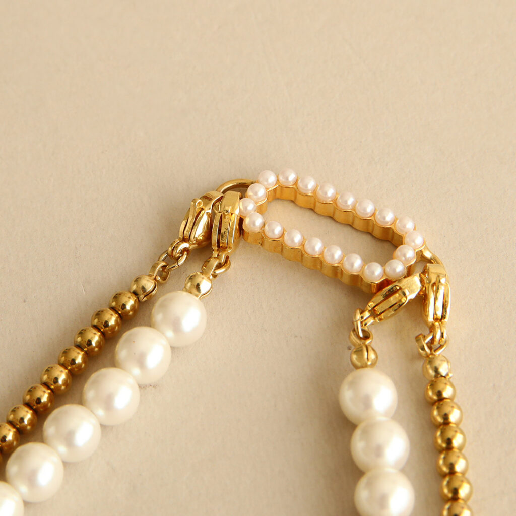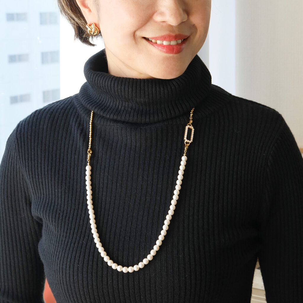 パールの上品さがありつつ、カジュアルにも合わせやすいバランスも◎。