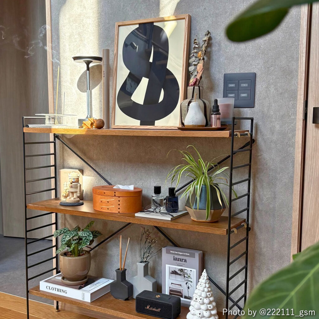 アイアンのシェルフと見事にマッチしていて素敵です。